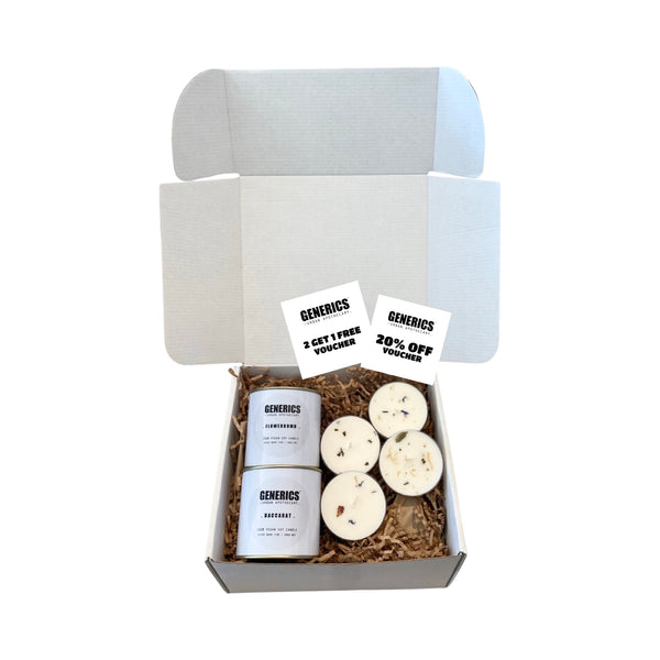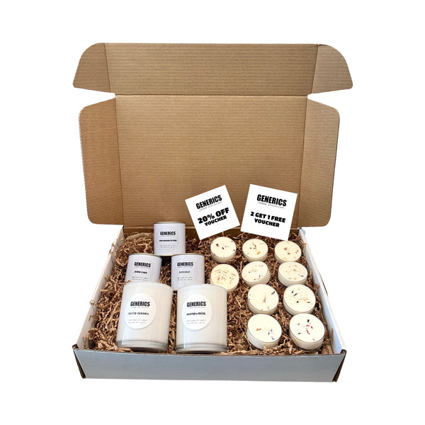 Each box is a mix and match of sizes against our most popular, new, limited edition and unreleased scents - no fragrance is replicated within each box. A perfect gift to give to a sensory connoisseur, who loves a big surprise and wants to try it all.