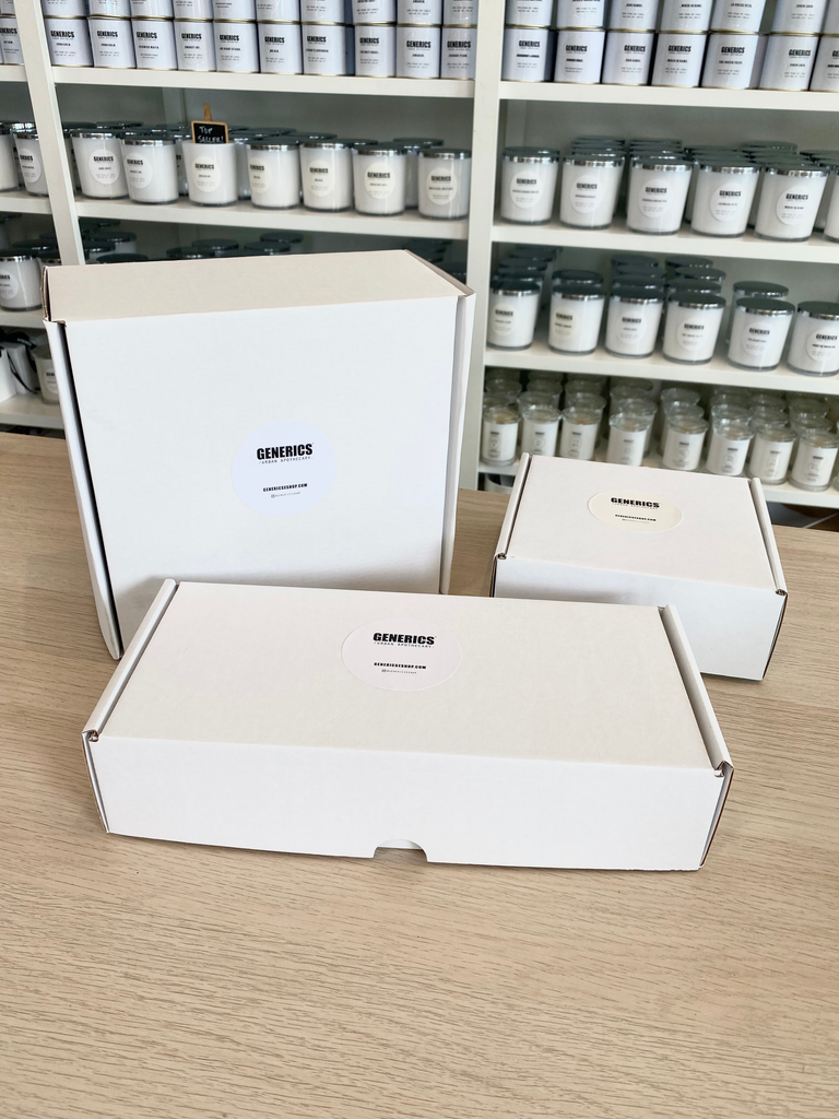 All products purchased online will be wrapped and boxed in our standard black and white tissue paper and shipping boxes.